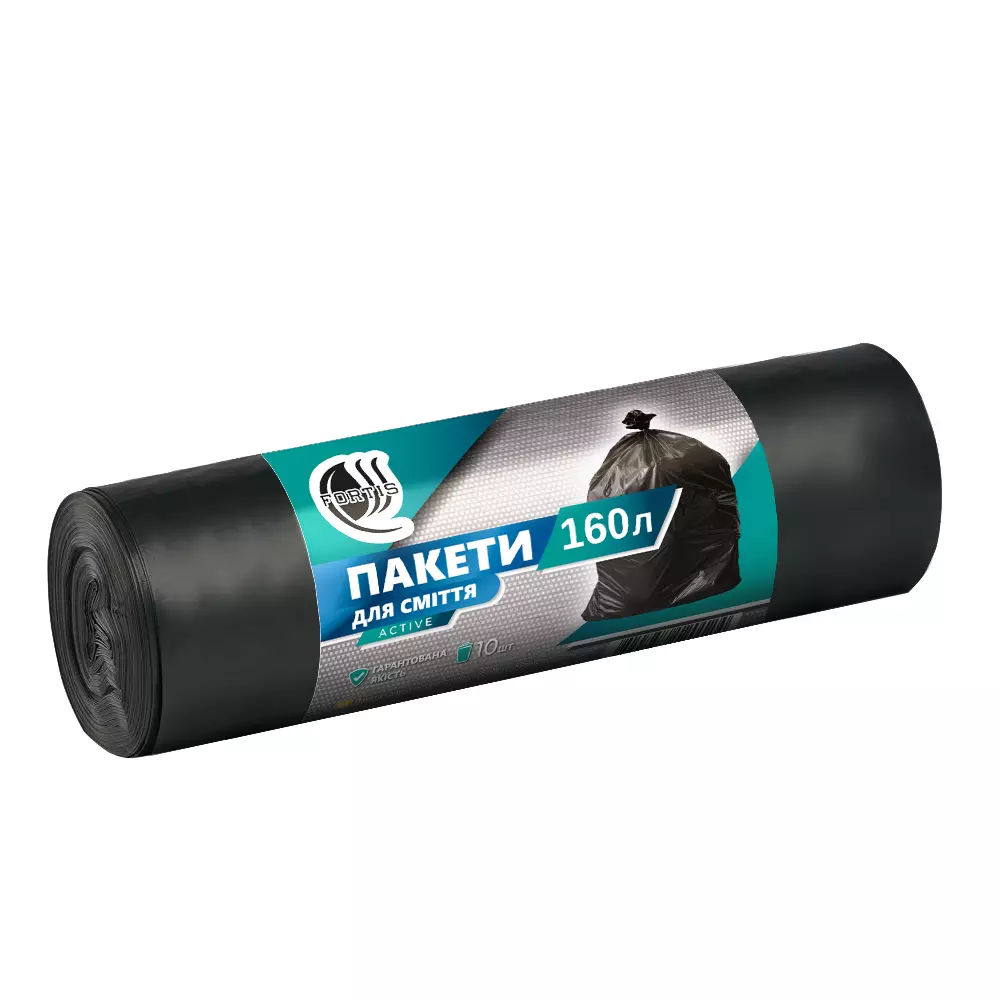 Пакети для сміття 160л. Fortis Aktiv (10 шт.) 24 мкм, 20 роликів в упаковці